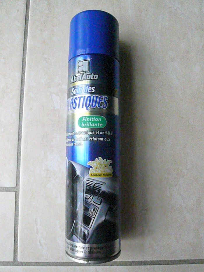 Soin des plastiques marque Abel Auto. Aérosol de 400 ml. Senteur fleurie. Traitement antistatique et anti UV. Redonne un brillant éclatant aux plastiques ternis. Dépoussière, nettoie et protège tous les plastiques intérieurs. Neuf. N’hésitez pas à regarder mes autres annonces pour réduire les frais de port.