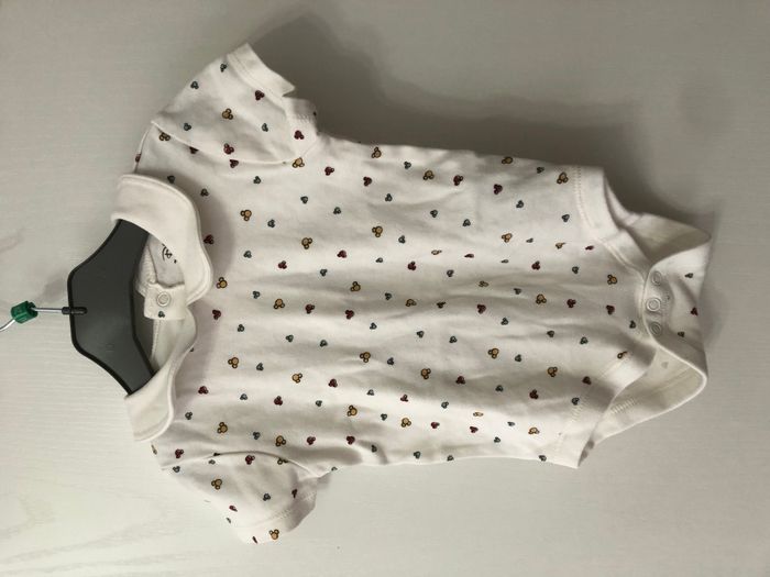 Joli body mixte, manches courtes et avec un col Motif petites têtes de Mickey colorées Très peu porté Marque Disney Taille 12-18 mois, 86cm