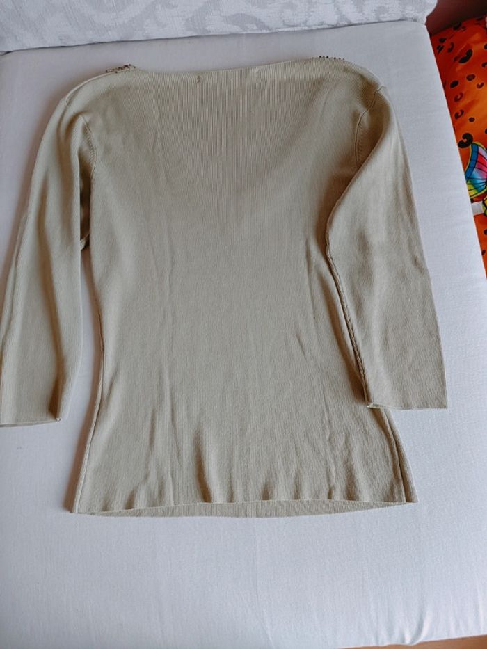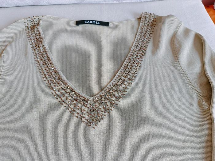 Top manches 3/4 côtelé perles col en v - photo numéro 3
