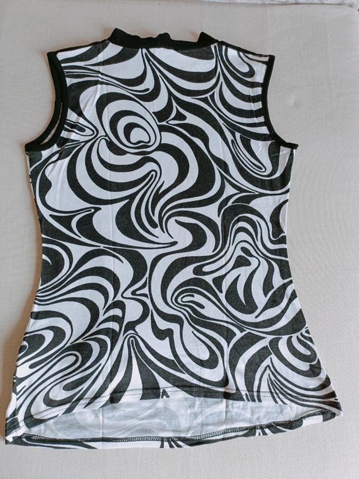 Top sans manche avec boucle motif noir et blanc - photo numéro 3