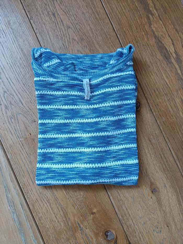 Top manche 3/4 ligne bleu et blanc - photo numéro 1