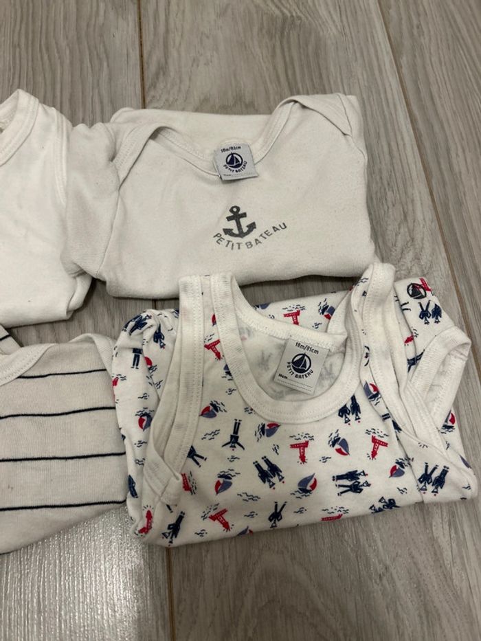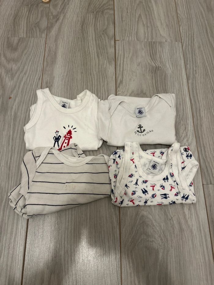 Quatre body petits bateaux, de bien utiliser deux autres très peu servi Taille 18 mois