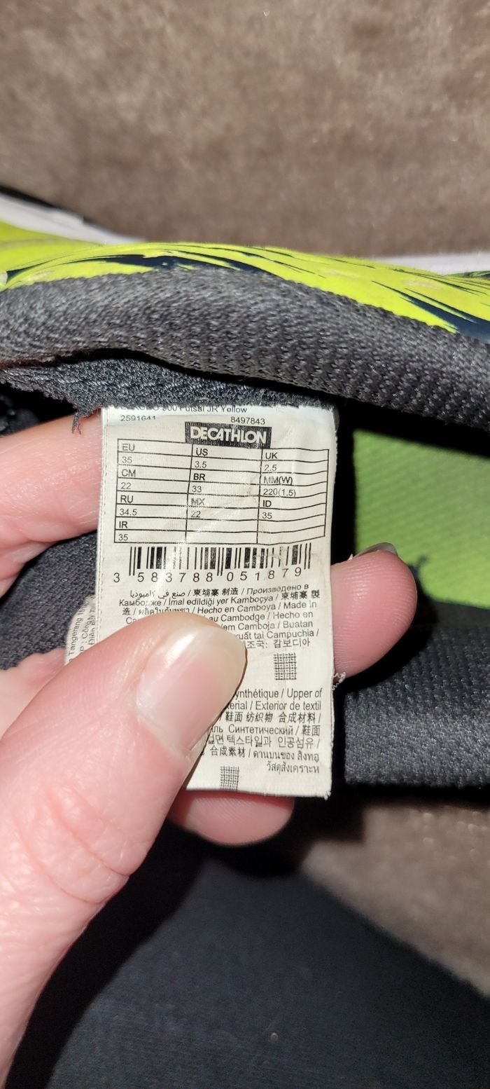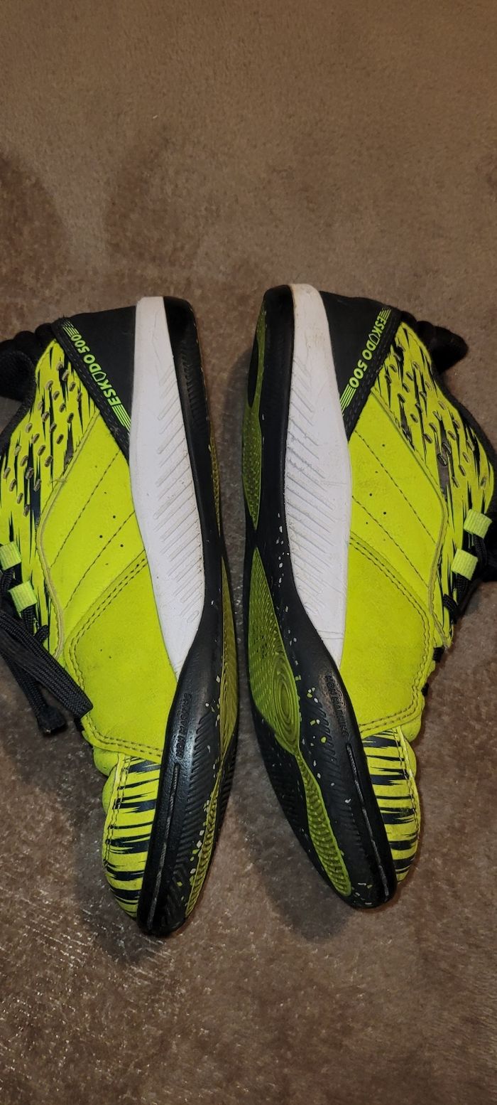 Baskets de foot Noir et vert Pointure 35 Kipsta Défaut voir photo
