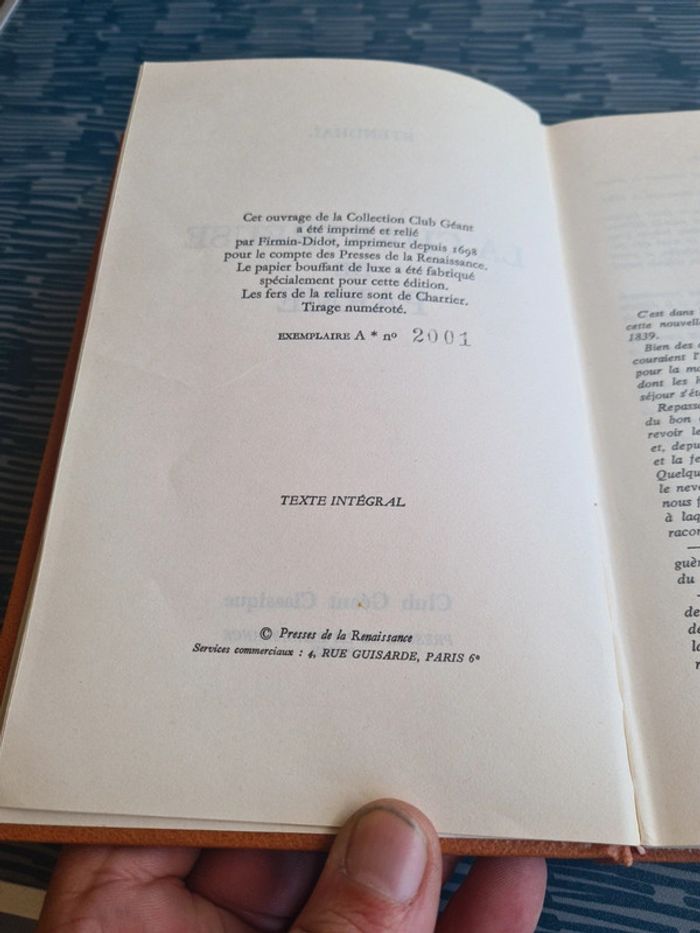 Un classique de Stendhal Très beau livre avec une reliure et une couverture très soignées Juste une petite usure à la fin du livre (Voir photo) N'hésitez pas à négocier des lots 😉 Offre spéciale rentrée: 1 acheté = 1 offert (de valeur égale ou inférieure) faites vos lots en déduisant la remise)