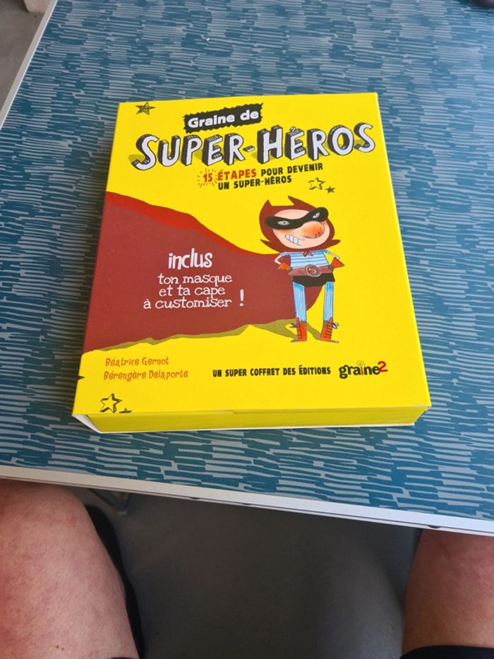 Devenir un super héros, cela s'apprend! Livre + cape et masque à customiser Offre spéciale rentrée: 1 acheté = 1 offert (de valeur égale ou inférieure) faites vos lots en déduisant la remise)