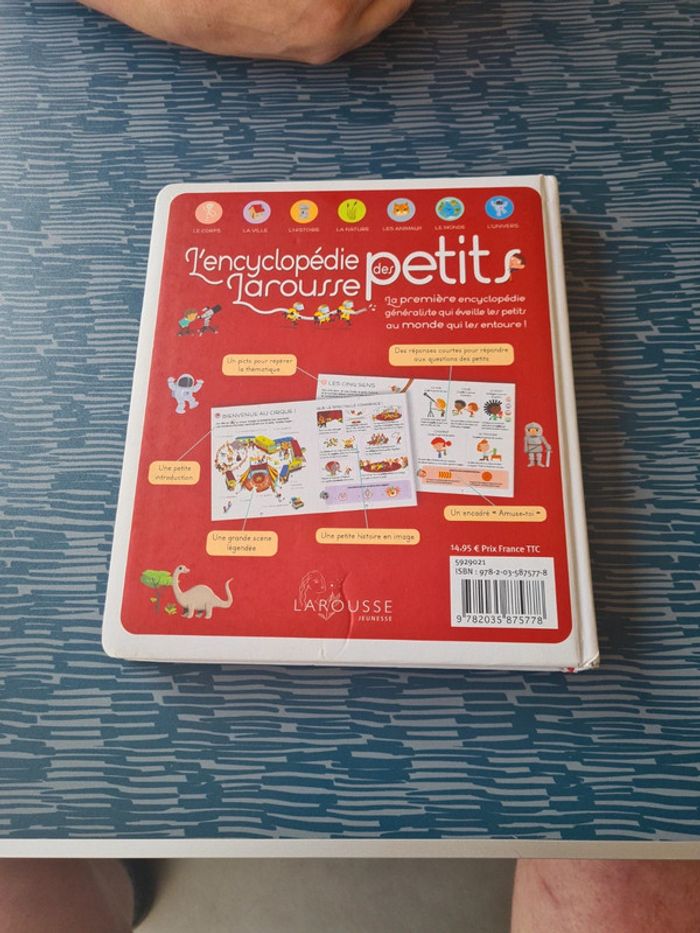 L'encyclopédie Larousse des petits Un peu usagé mais état très correct Petite annotation sur la couverture (voir photos) Offre spéciale rentrée: 1 acheté = 1 offert (de valeur égale ou inférieure) faites vos lots en déduisant la remise)