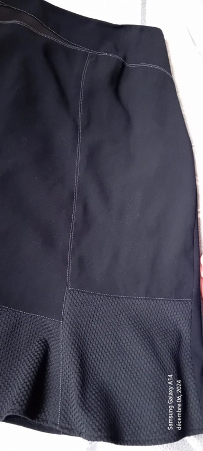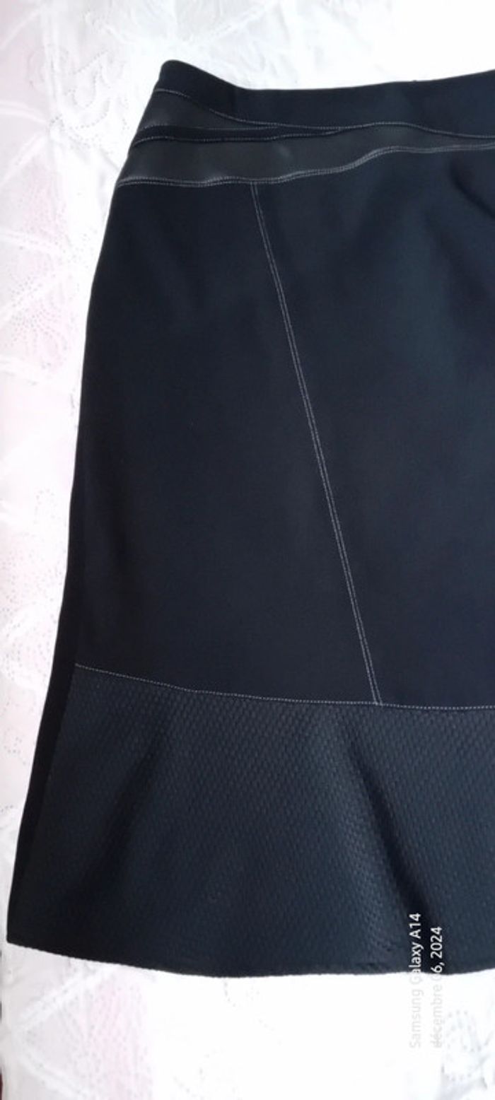 Jupe mi longue bimatiere avec simili cuir et maille abeille noir femme 44 - photo numéro 17