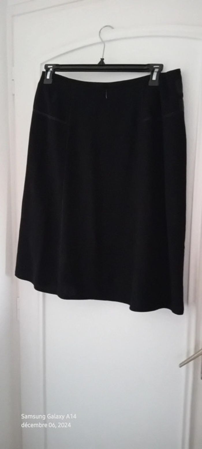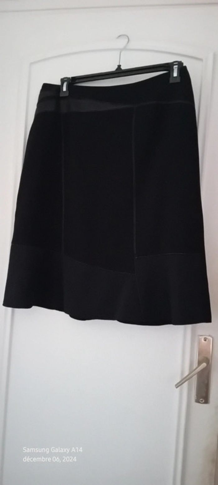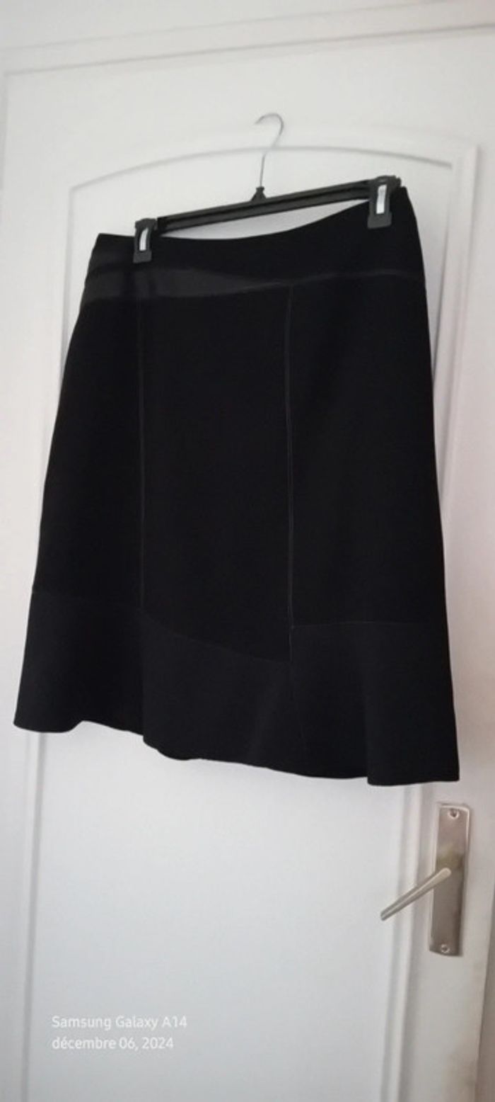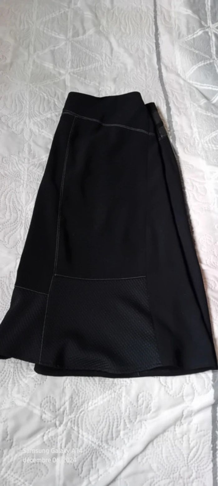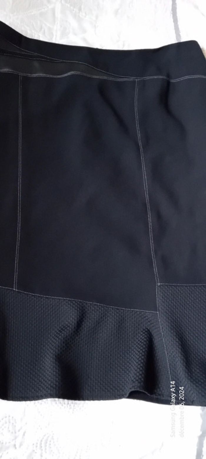 Jupe mi longue bimatiere avec simili cuir et maille abeille noir femme 44 - photo numéro 14