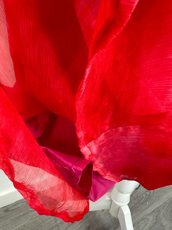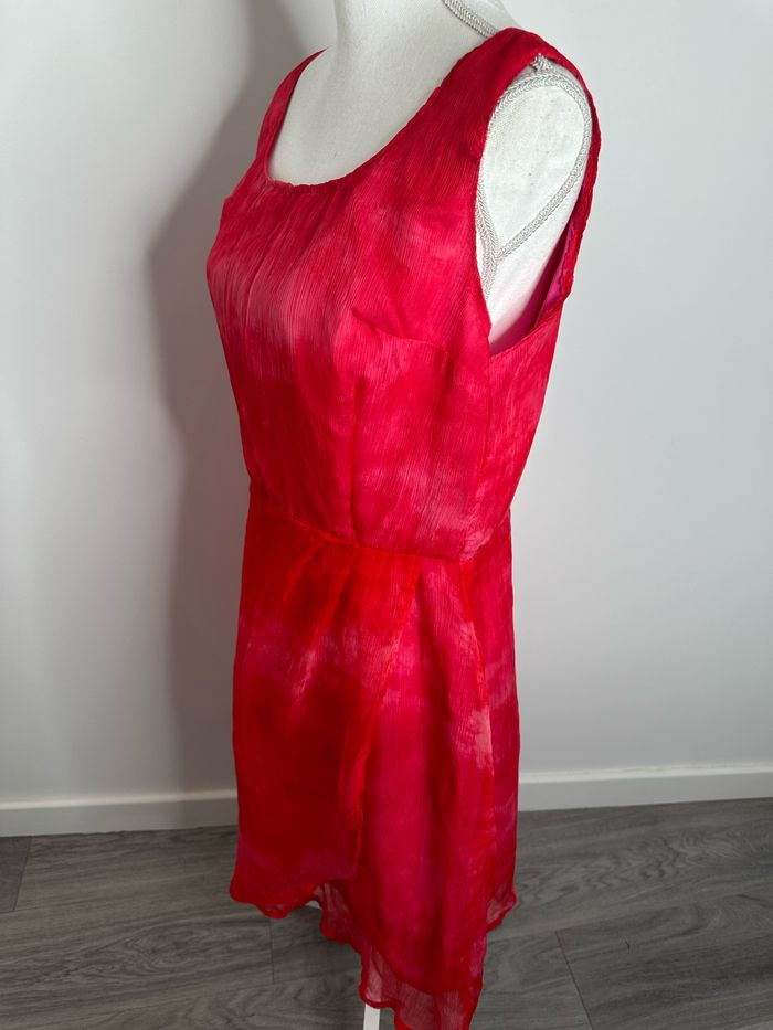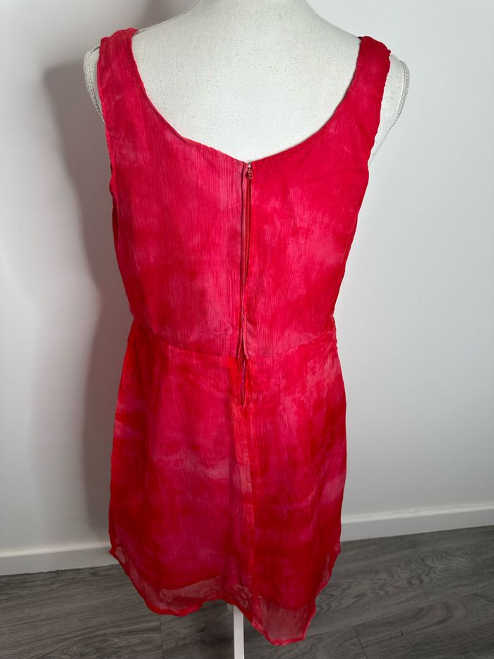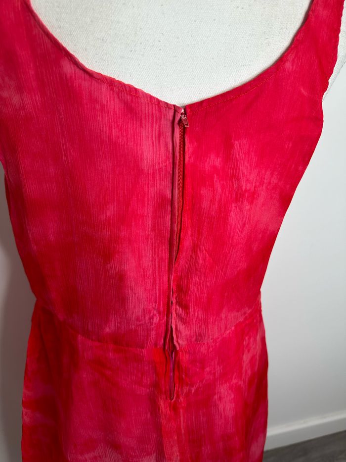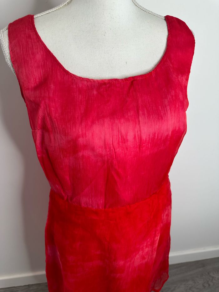 Robe tunique - Excellent état - Taille 38 équivalent M Dimensions en bas de l’annonce - Rose fuchsia et rouge - Vintage, années 80’ - Tie and dye - Long zip dans le dos - Doublure intérieure - Tissus mesh - Pas d’étiquette de taille ni de matière Dimensions: - 50cm niveau aisselles - 40cm à la taille - 97cm de long