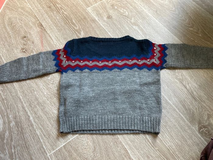 Pull de la marque la redoute en très bon état hormis des bouloches taille 12 mois gris et bleu et rouge