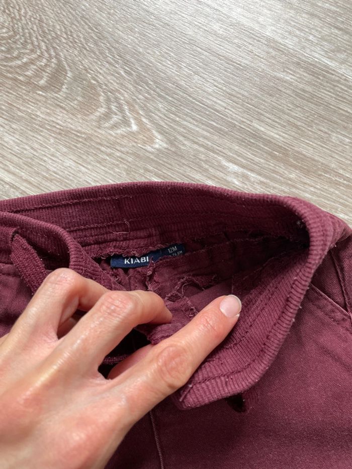Pantalon bordeaux de la marque Kiabi, en très bon état légèrement blanchi au niveau des genoux taille 12 mois