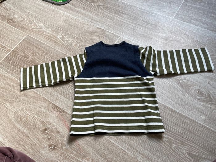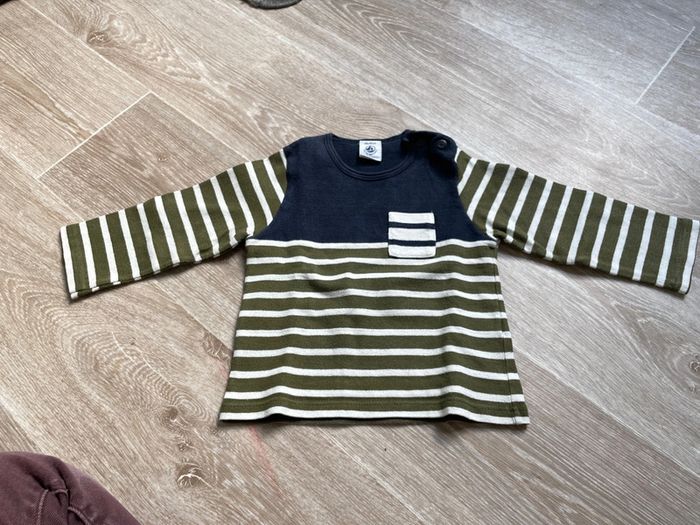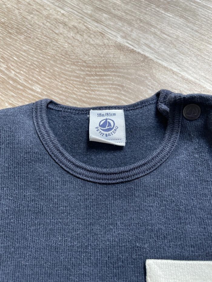 T-shirt à manches longues de la marque, petit bateau taille 18 mois, mais taille petit donc plutôt pour un 12 mois en très bon état couleur bleu marine et kaki