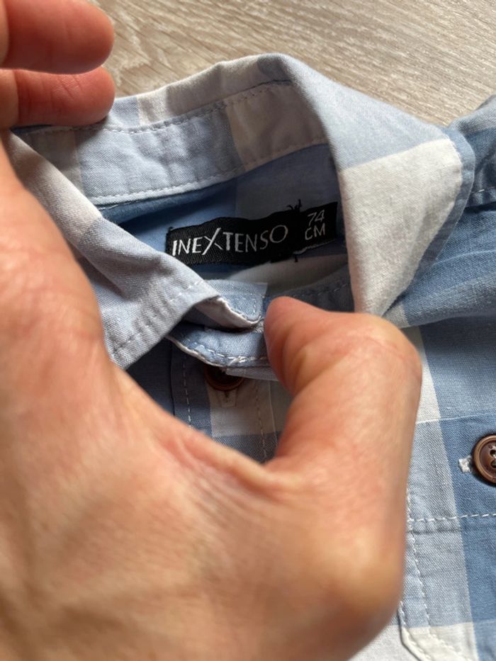 Chemise à carreaux bleu et blanc de la marque in extenso taille 12 mois en très bon état