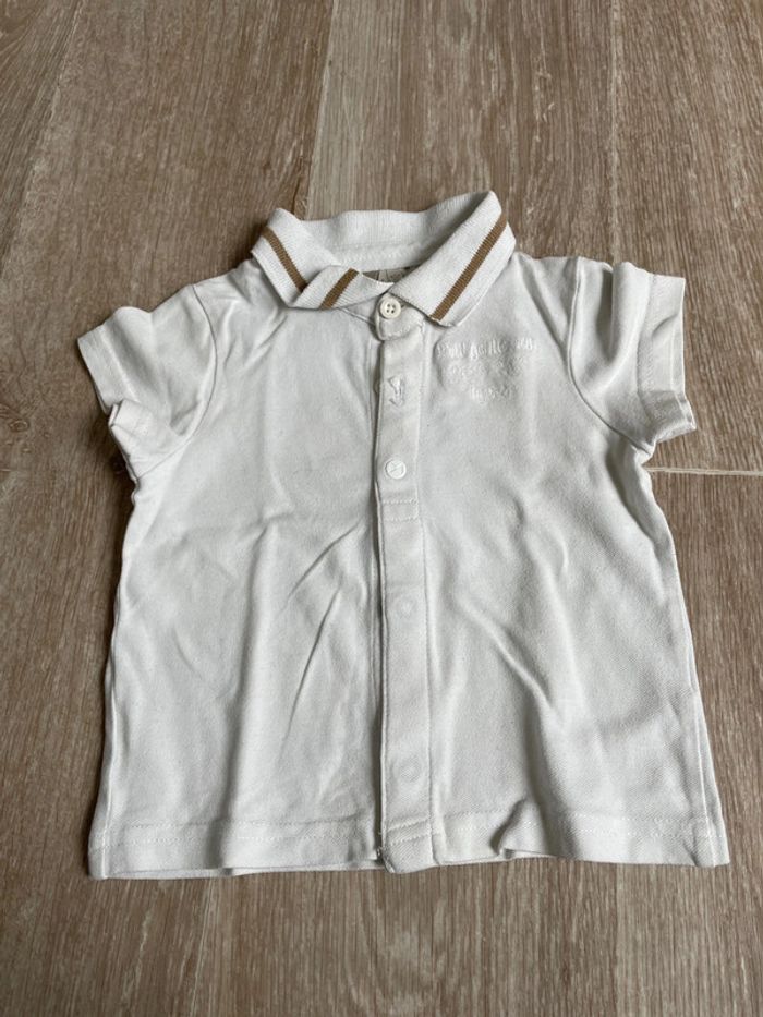 Polo blanc à manches courtes de la marque orchestra taille 6 mois en très bon état hormis de légères taches sur le devant