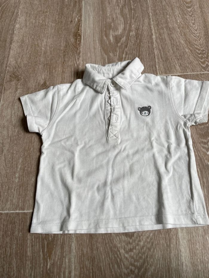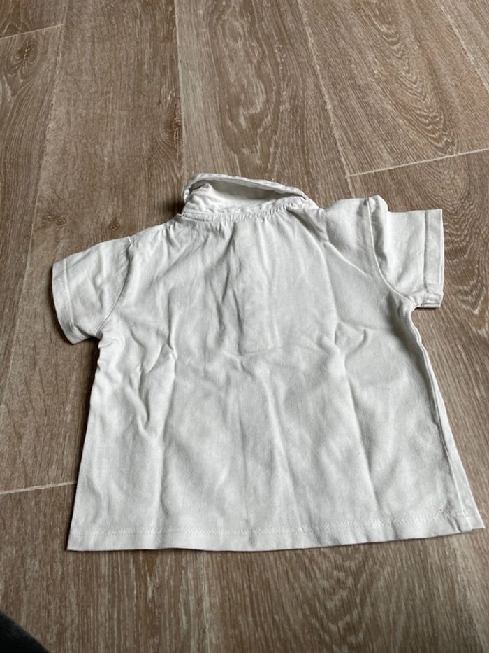 Polo manches courtes blanc de la marque kitchoun en bon état (légèrement taché) Taille 9 mois