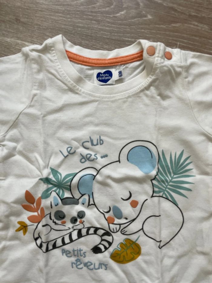 T-shirt manches courtes de la marque Leclerc taille six mois en très bon état, hormis quelques points de couture à l’arrière à cause de la déchirure lié à l’antivol