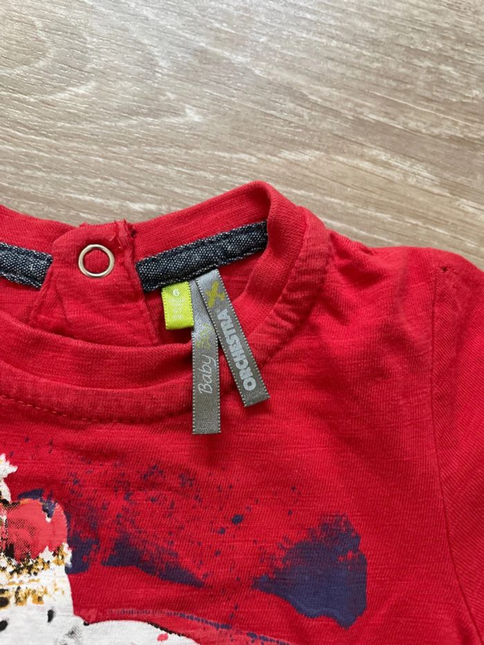 T-shirt rouge de la marque orchestra en très bon état, taille six mois