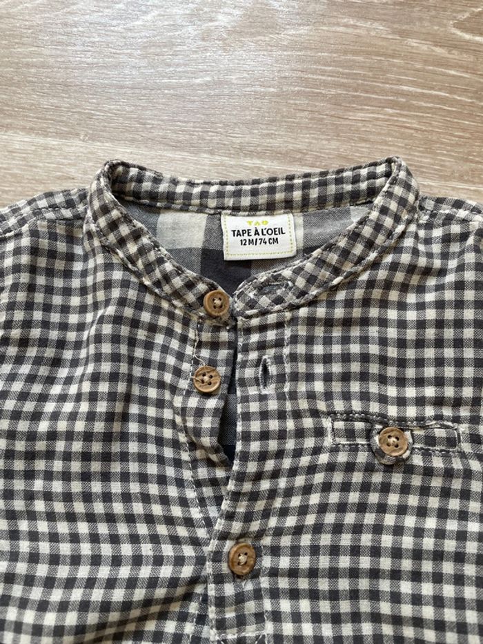 Chemise à manches longues à carreaux de la marque, tape-à-l’œil en très bon état taille 12 mois 100 % coton