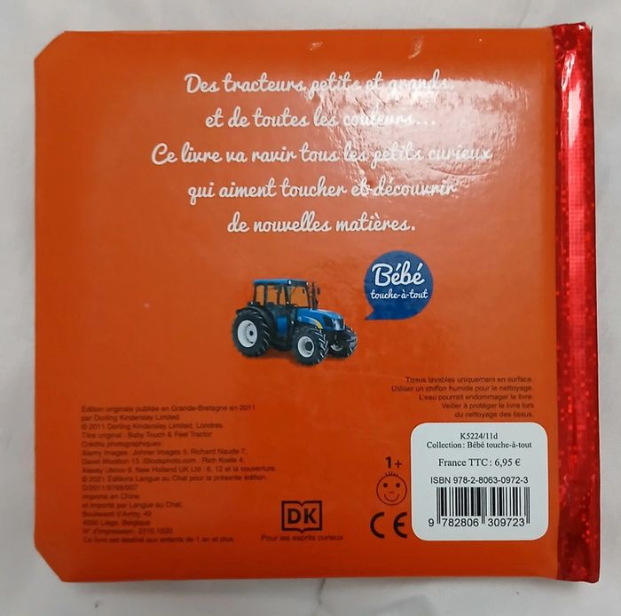 Livre enfant sur les tracteurs. Livre à toucher. Diverses textures et touchés. Beau livre petit donc pratique pour les petits. Pour les 1 à 2 ans.