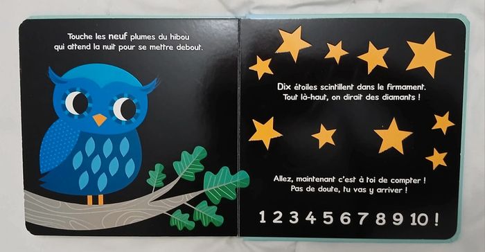 Livre pour enfant. Titre "bonjour les nombres". Pour compter et à toucher différentes formes textures. 10 pages. #livreenfant #lesnombres #àtoucher
