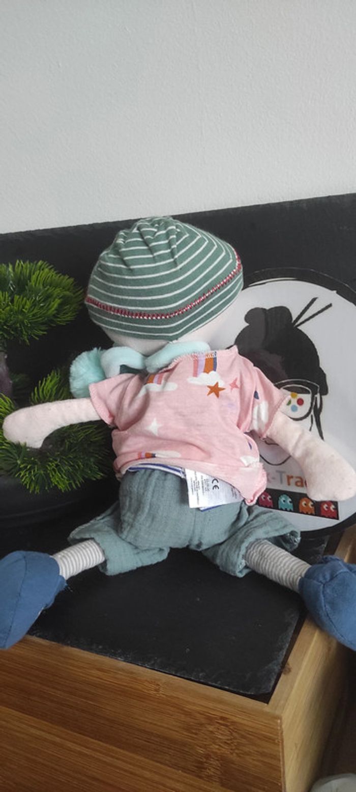 doudou peluche poupée hema garcon les canailles tim bonnet echarpe bleu rose rayé rayure nuage pluie étoile nuage Bon état PE0133 bel état il a une autre t shirt en dessous du rose qui est bleu et blanc rayé Afin de ne pas abîmer les doudous et de laisser le choix dans l'utilisation de la lessive les peluches ne sont pas lavées avant envoi Description complément : Petit nettoyage à prévoir Vous achetez ce que vous voyez les photos font entièrement partie de la description #geektradebabynat Transport : Les frais de transport comprennent les frais du transporteur ainsi que l'emballage pour protéger au mieux votre achat. Chaque achat est envoyé en format colis avec numéro de suivi Le poids du colis est de 500g finit (je ne peux pas faire moins) il peut donc y avoir plusieurs objets dans le carton si vous le souhaitez (contactez moi afinde grouper les frais de port) Référencement : #geektradedoudou #peluche #plush #doudou #enfan