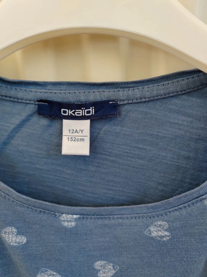 💙Tee-shirt bleu avec motifs cœurs 12 ans Okaïdi - photo numéro 1