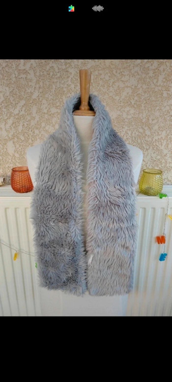 🧣Écharpe grise poil mi long grande longueur - photo numéro 1