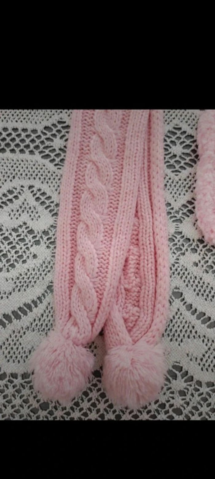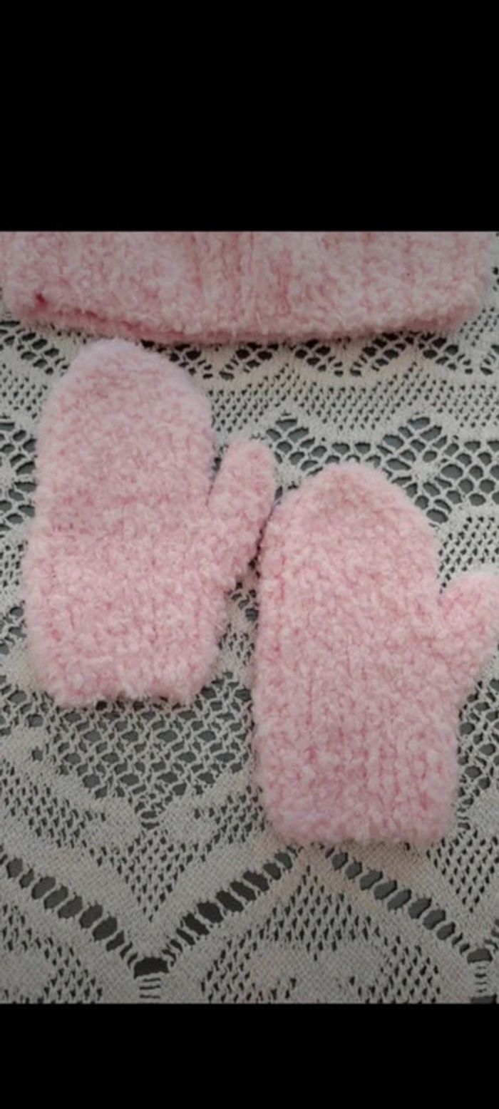 🧣Ensemble bonnet écharpe et moufles roses 4 ans - photo numéro 4