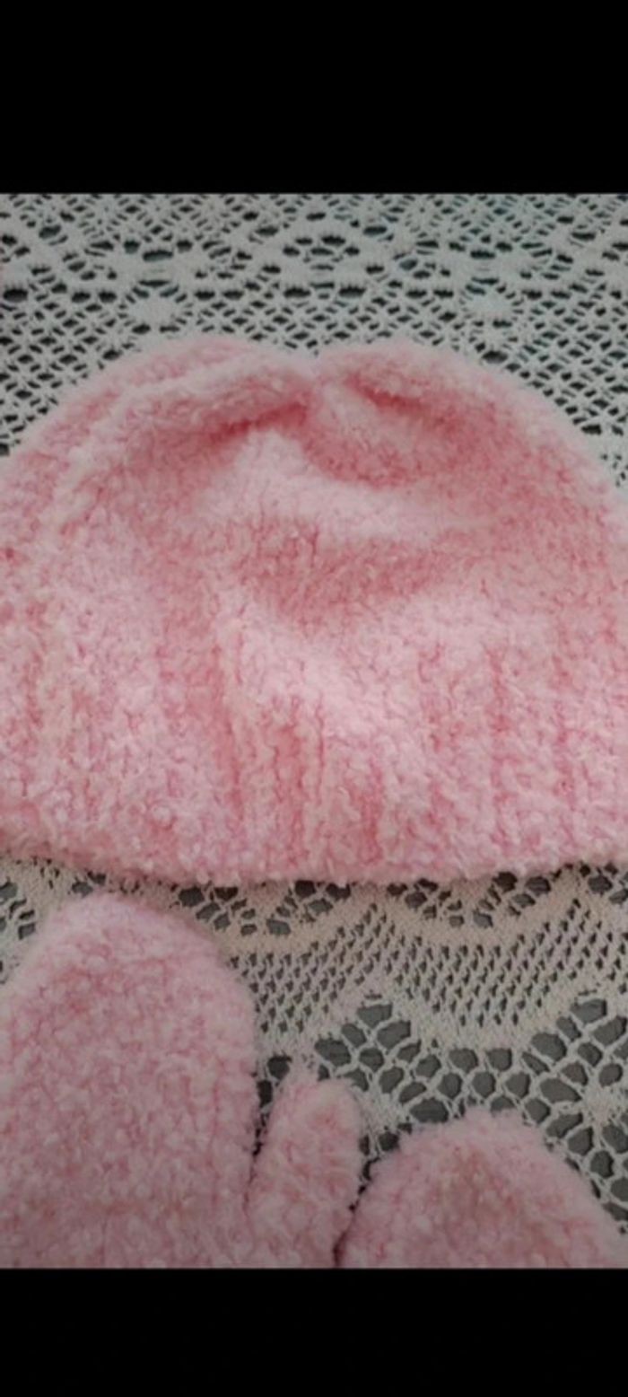 🧣Ensemble bonnet écharpe et moufles roses 4 ans - photo numéro 3