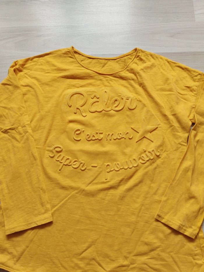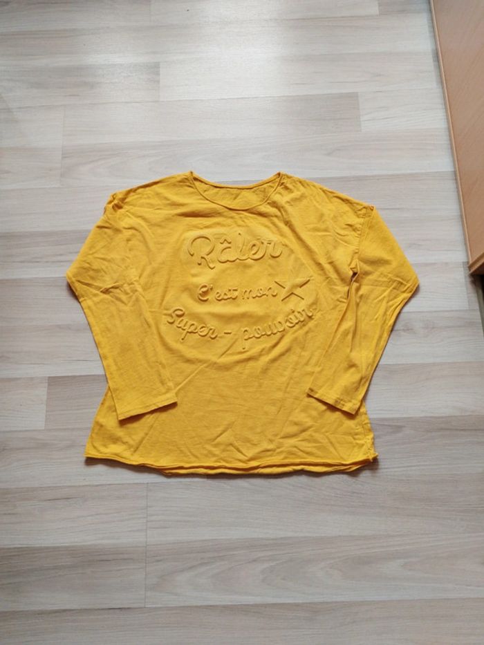 Tee-shirt manches longues écriture en relief. Porté une seule fois