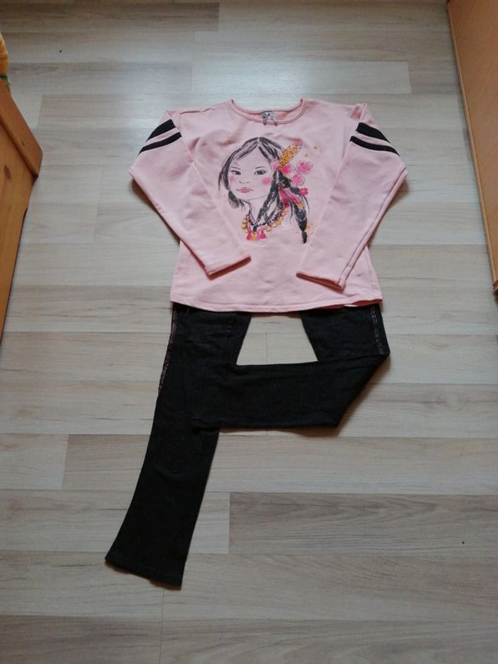Ensemble pantalon bas droit gris anthracite- pull saumon - photo numéro 1
