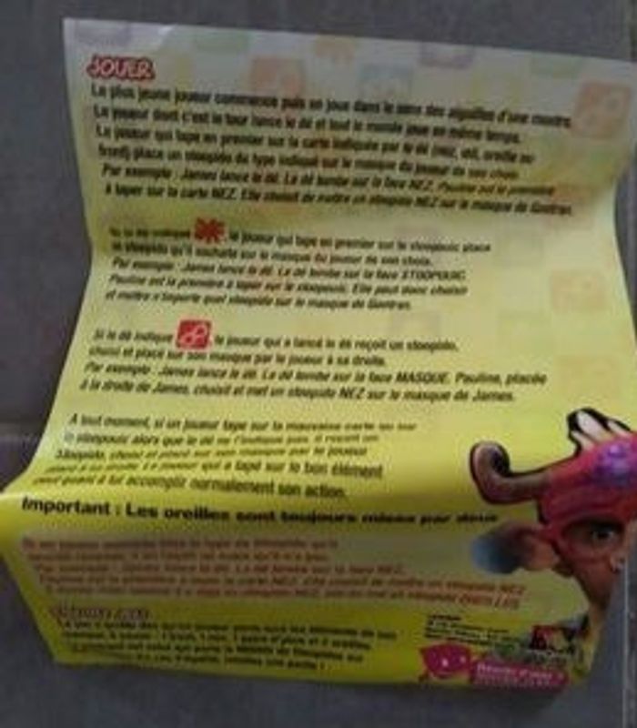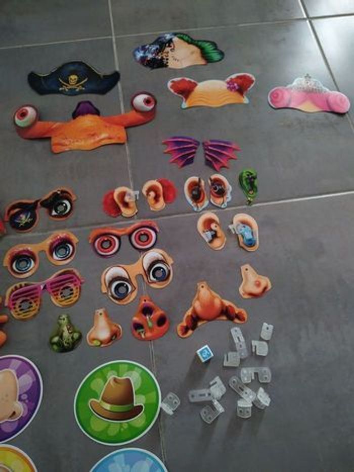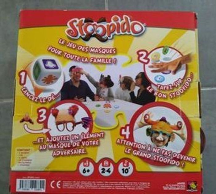 Lance le dé ! Le premier à trouver le bon Stoopido pourra le mettre sur le masque d'un adversaire ! Cheveux de clowns, groin de cochon, oreilles en champignons, tête d'extraterrestre ou de dragon. Tu pourras déguiser tes adversaires en tout. ou presque ! Dès 6 ans De 2-4 joueurs Manque juste une oreille mais ne gêne pas pour jouer et rigoler car il y en a d'autres #jeuxjouetscamilled974