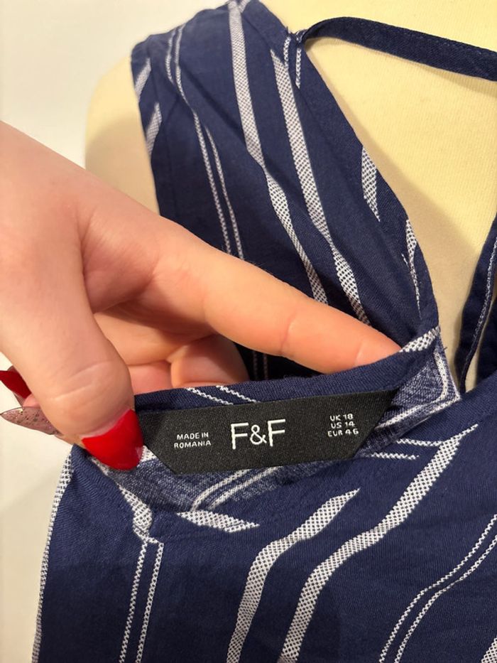 ➡️ Je vends un débardeur femme taille 46 de marque F&F ℹ️ De couleur marine et blanc ♻️ Matière : 100% Viscose 💫 Très bon état 📤 Envoi rapide, via mondial relay, shop2shop, colissimo, relais colis 📦 N’hésitez pas à faire un lot #romainp22112002femmegrandetailles #F&F #femme #été #débardeur