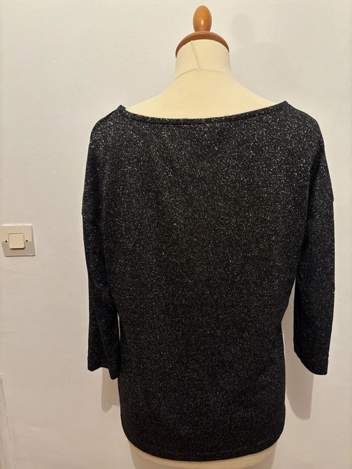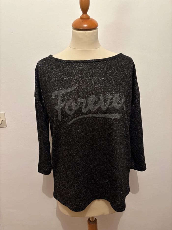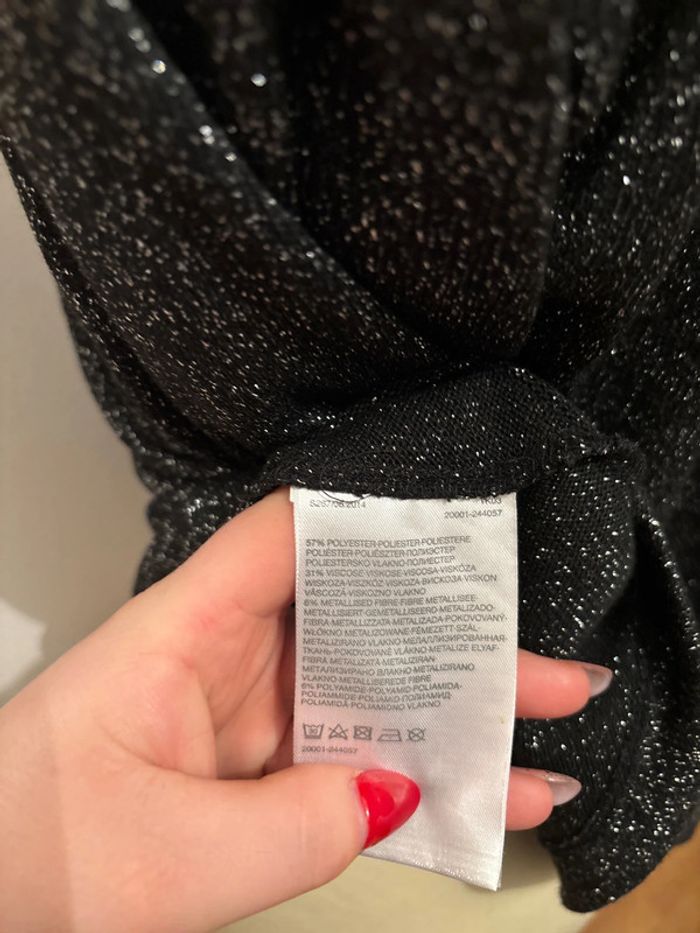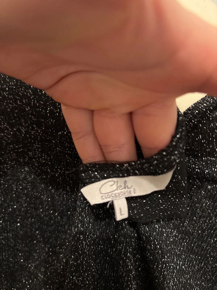 ➡️ Je vends un haut manches 3/4 femme taille 40 de marque Clockhouse ℹ️ De couleur noir avec des paillettes ♻️ Matière : 57% Polyester, 31% Viscose et 6% Métal. 💫 Très bon état 📤 Envoi rapide, via mondial relay, shop2shop, colissimo, relais colis 📦 N’hésitez pas à faire un lot #romainp22112002femmel #clockhouse #femme #tshirt