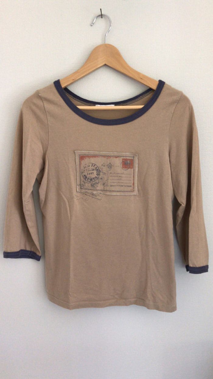 Joli tee shirt qui fait son effet ! de la marque Promod taille 3 soit L manches 3/4 a été porté mais est encore en très bon état (pas de taches, pas de trous...)