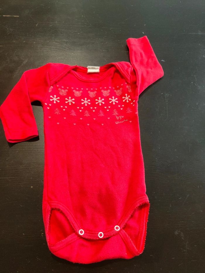 Bodie manches longues, dessin de Noël. Une tâche dans le dos. Les motifs sont un peu délavés.