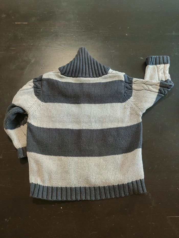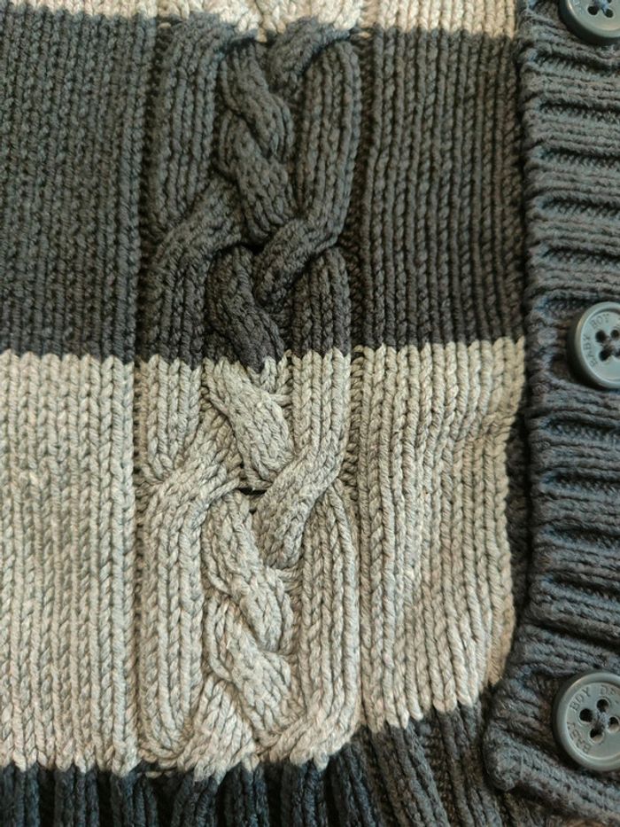 Gillet grosse maille. La maille est détendue à certains endroits.
