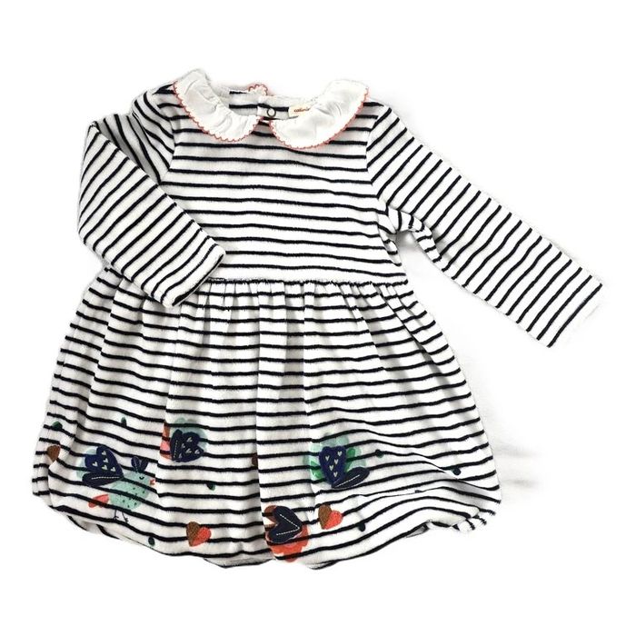 BOUTIQUE PRO MES VETEMENTS BEBE (+ de 3000 articles en stock) PAS D'ENVOI PAR VINTED GO MINIMUM DE COMMANDE 5€ (toute commande inférieure à 5€ sera annulée) ------------------------------- Robe bébé fille 18 Mois CATIMINI Robe manches longues forme boule velours rayé bleu marine et blanc Avec motifs imprimés et brodés dans le bas Doublure coton Fermeture pressions dans le dos (réf BH18-252) Occasion très bon état #mesvetementsbebefille18mois