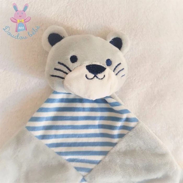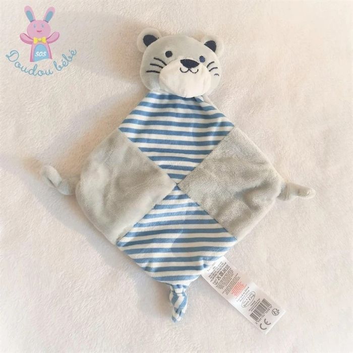 BOUTIQUE PRO SOS DOUDOU BEBE (+ de 3000 doudous en stock) **Me contacter pour un lot** ****************************** Doudou plat CHAT TIGRE velours tout doux gris et rayé bleu blanc Bruit de grelot TOM & KIDDY (réf D-1592) Occasion très bon état (2 en stock) #sosdoudouchat #sosdoudoutom&kiddy