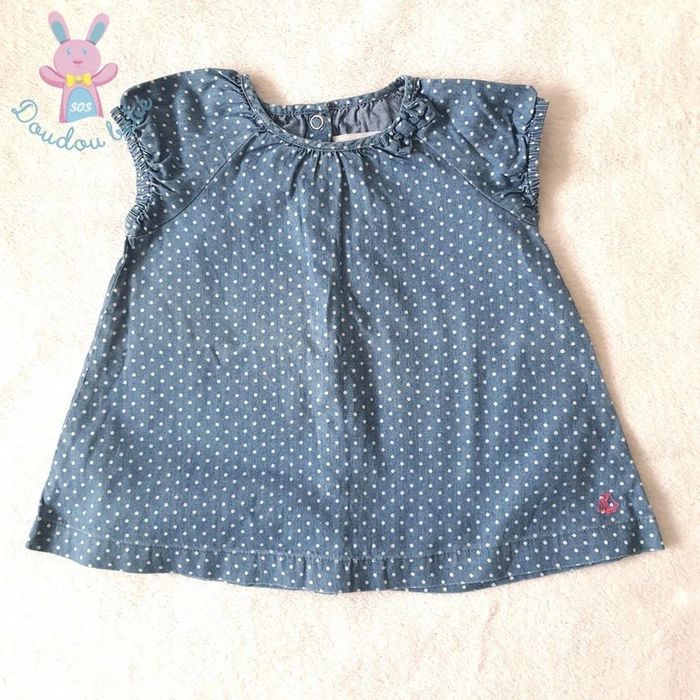 Robe bleu à pois blanc bébé fille été 3 Mois Petit Bateau