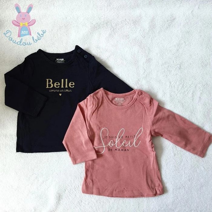 BOUTIQUE PRO SOS DOUDOU BEBE (+ de 3000 articles en stock) **Me contacter pour un lot** --------------------------------- Lot 2 t-shirts manches longues Bébé fille 3 Mois KIABI Occasion très bon état #mesvetementsbebefille3mois