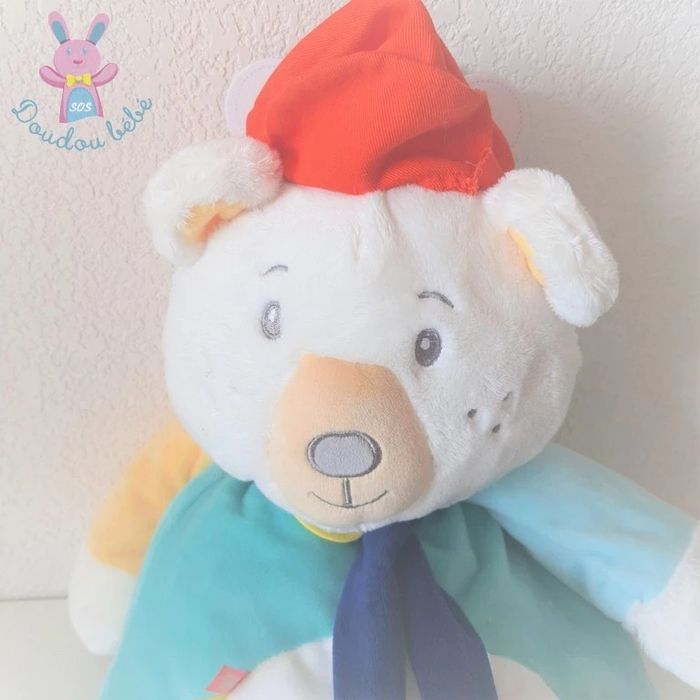 BOUTIQUE PRO SOS DOUDOU BEBE (+ de 3000 doudous en stock) **Me contacter pour un lot** Doudou OURS Mr Paul range pyjama "Ma cachette à pyjama" Velours tout doux blanc vert orange jaune avec casquette et écharpe Poche à scratch dans le dos BN0376 BABY NAT (réf BN-61N) Neuf avec support carton #sosdoudouours #sosdoudoubabynat