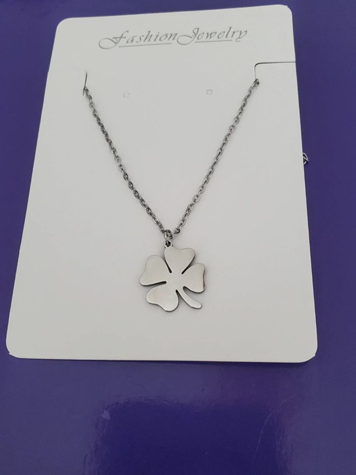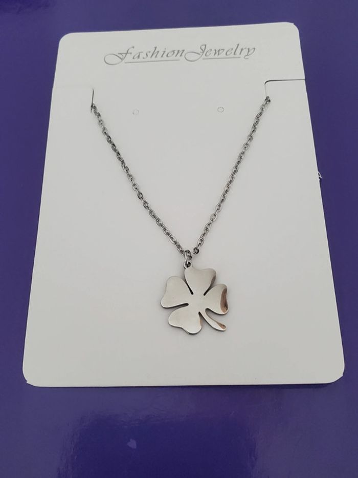 Collier argentée en acier inoxydable ne rouille pas, trèfle à quatres feuilles #bijoux76210bijoux