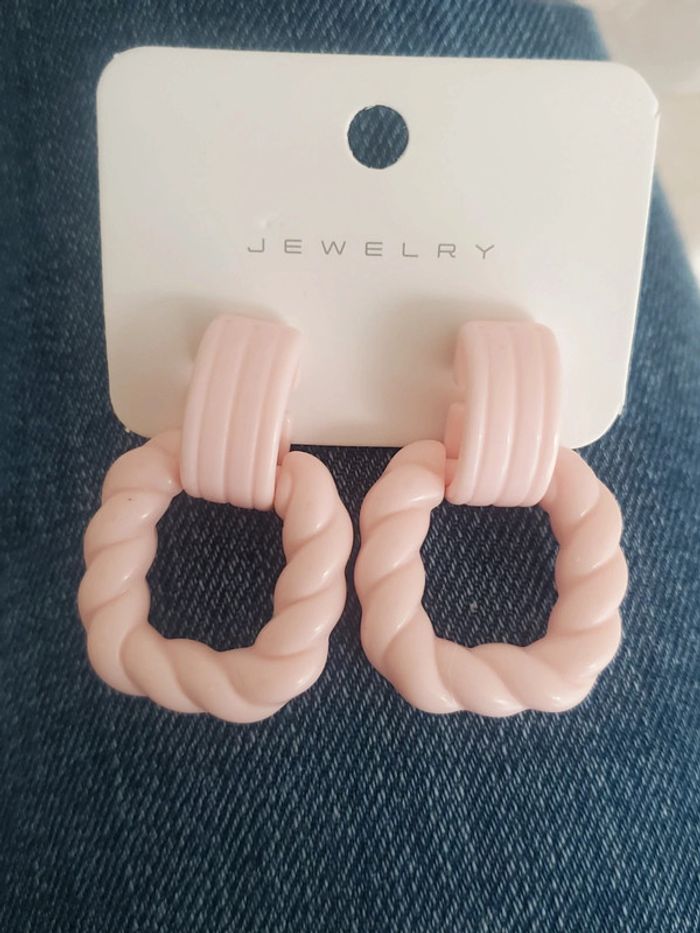 Boucles d'oreilles clou carré torsadé rose effet ancien vintage #bijoux76210bijoux