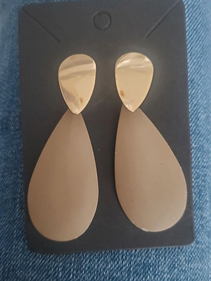 Boucles d'oreilles tendance chic beige doré - photo numéro 2