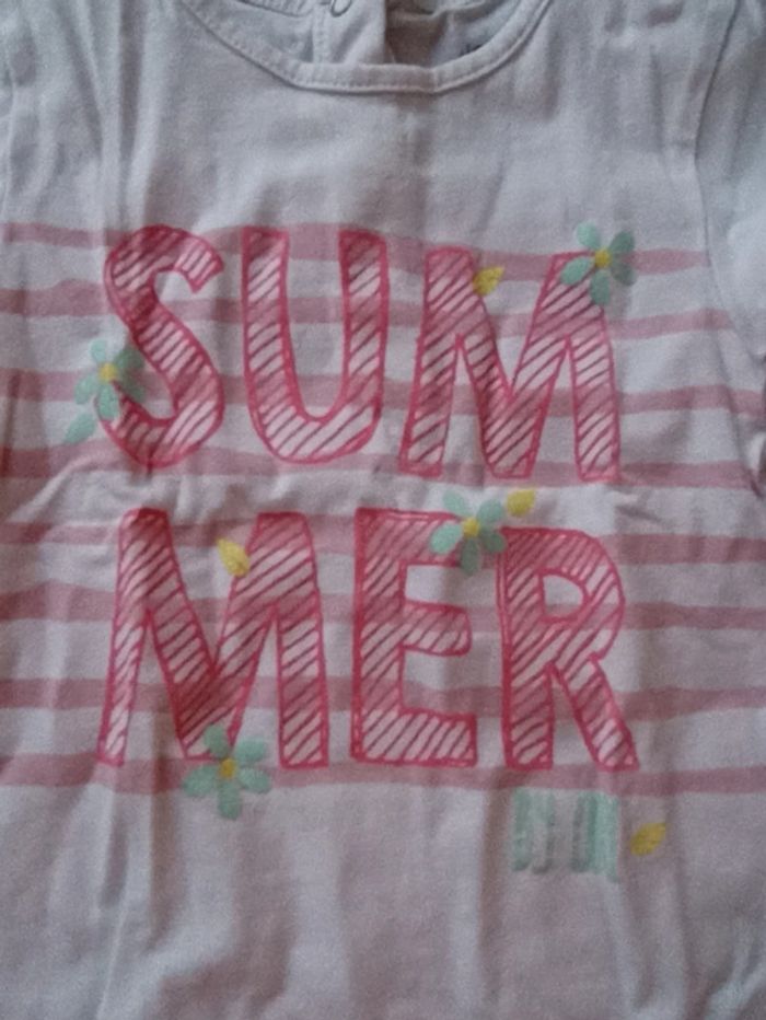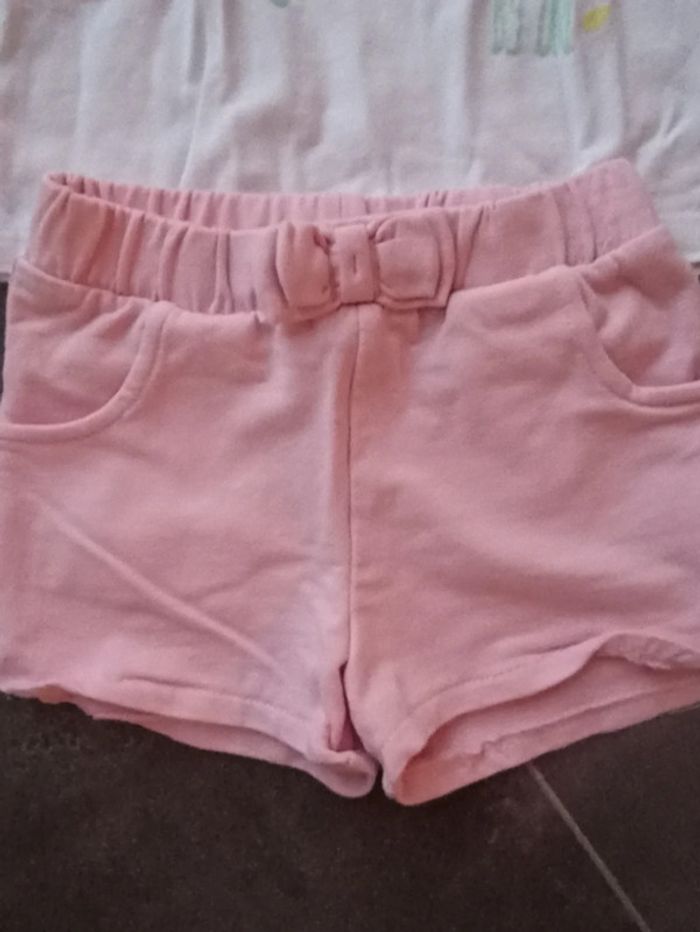 T-shirt blanc avec motif rose Short souple et léger rose pâle Taille 81 / taille 18 mois