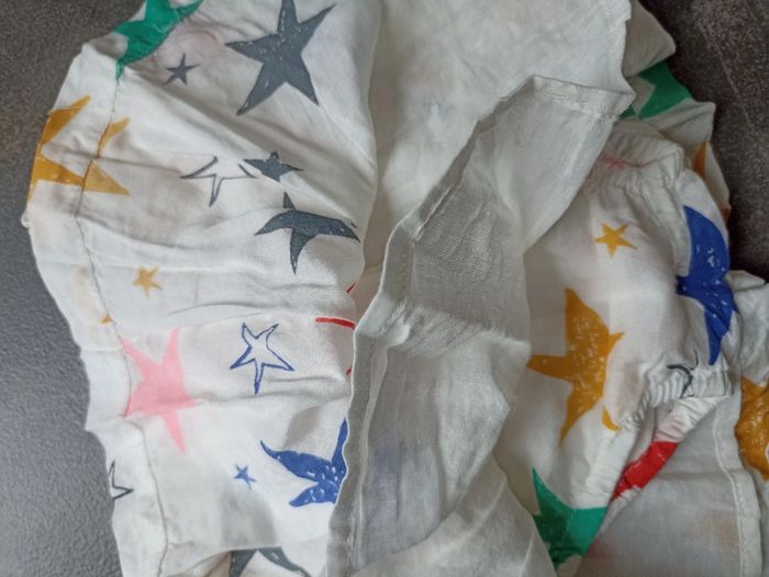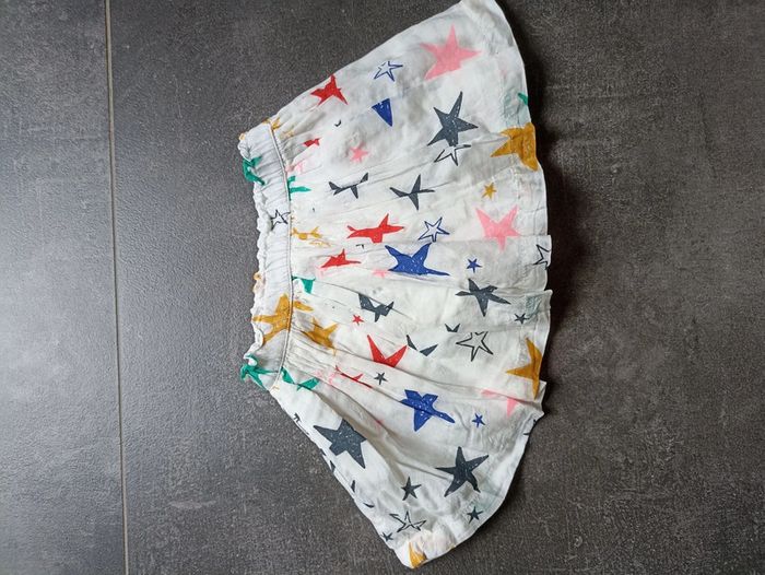 Jupe légère doublée et avec "culotte" intégrée (pour cacher le Pampers) Jupe blanche avec motif étoile 🌟 de toutes les couleurs