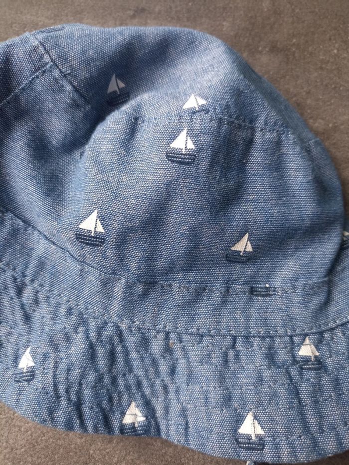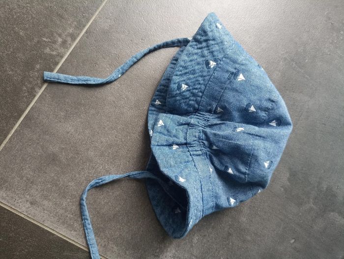 Chapeau couleur bleu jeans avec motif bateau ⛵ Deux cordons pour l'attacher