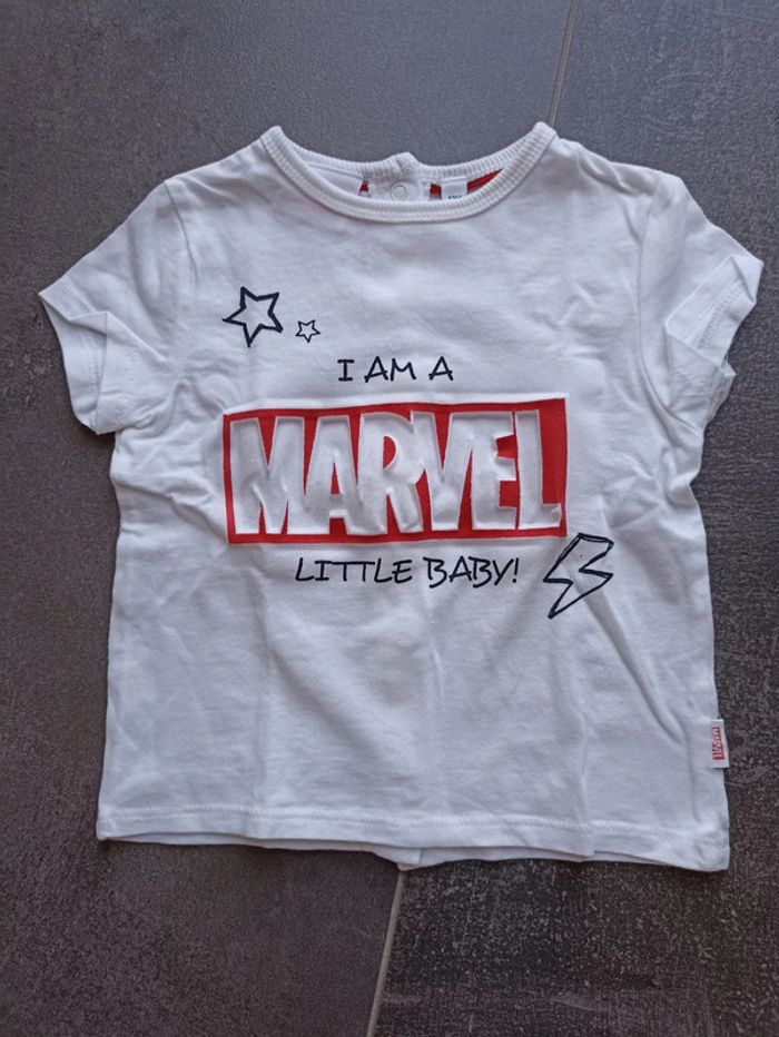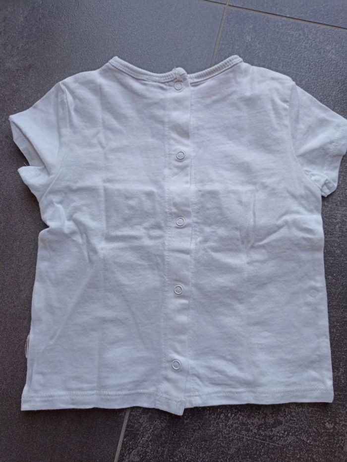 T-shirt blanc avec ouverture dans le dos par boutons pressions inscription relief
