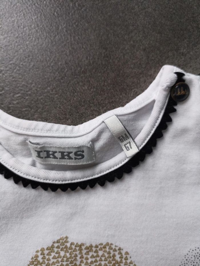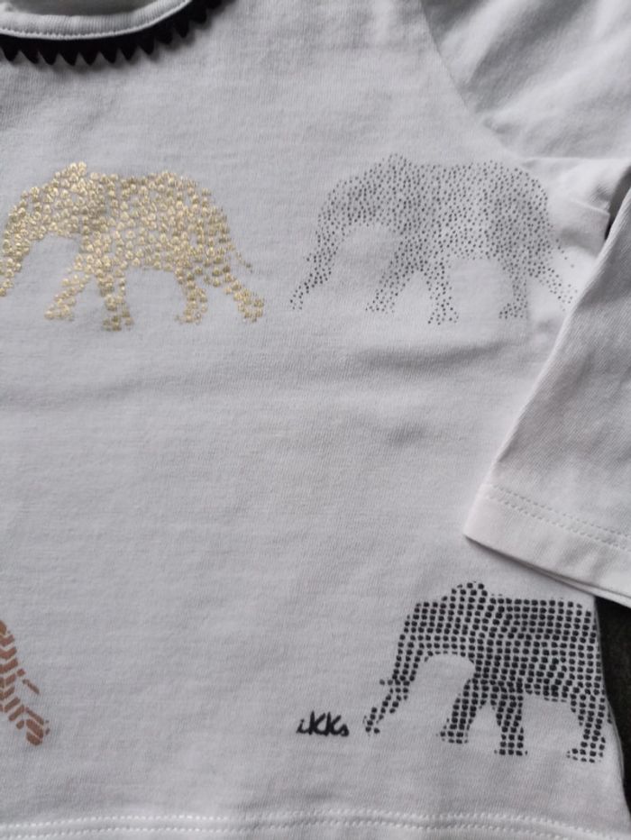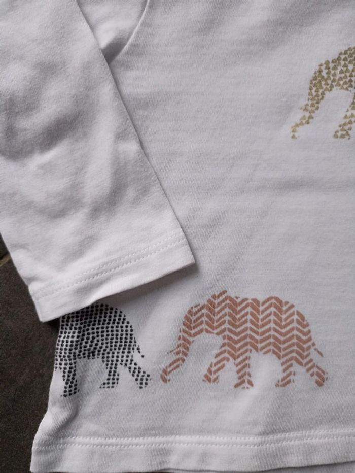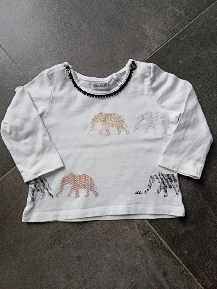 T-shirt manches longues blanc avec motif éléphant 🐘. Taille 6 mois